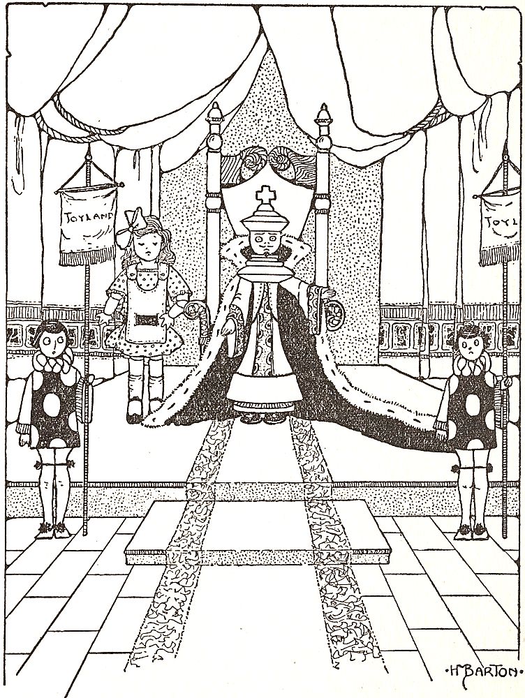 “Get up, dear,” said Wooden in the kind and gentle voice that Peggy had known she would speak in if she ever spoke at all. “I am going to take you to Toyland.”