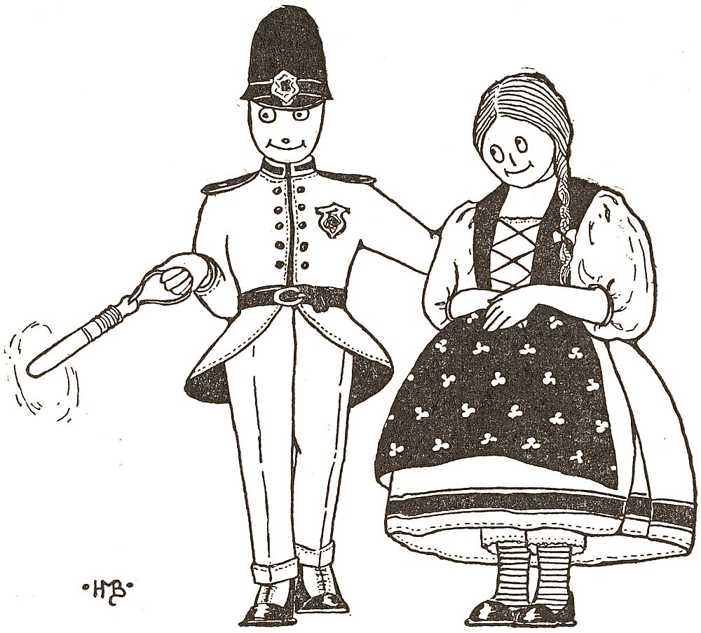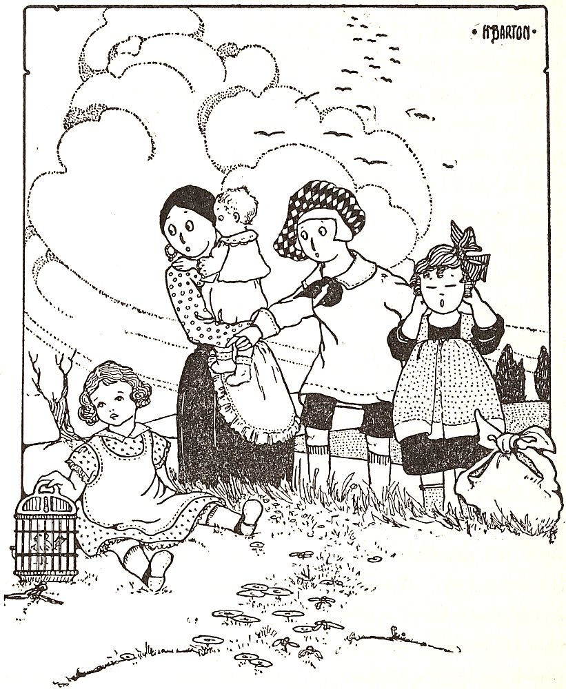 Peggy told Mabel that she ought not to knock her doll’s head on the road, and Mabel pointed at Rose, and said: “If I had a doll like that, I wouldn’t want to knock ’er ’ead on the road.”