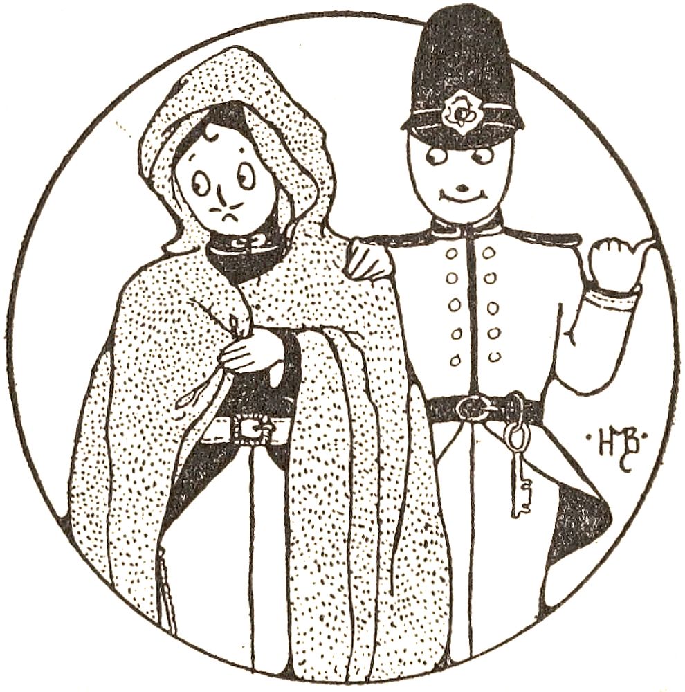 They had just passed, rather quickly, when an idea suddenly sprang into Peggy’s mind. She clutched at Wooden’s arm, and said, “Look at those two! I believe they are disguised.”