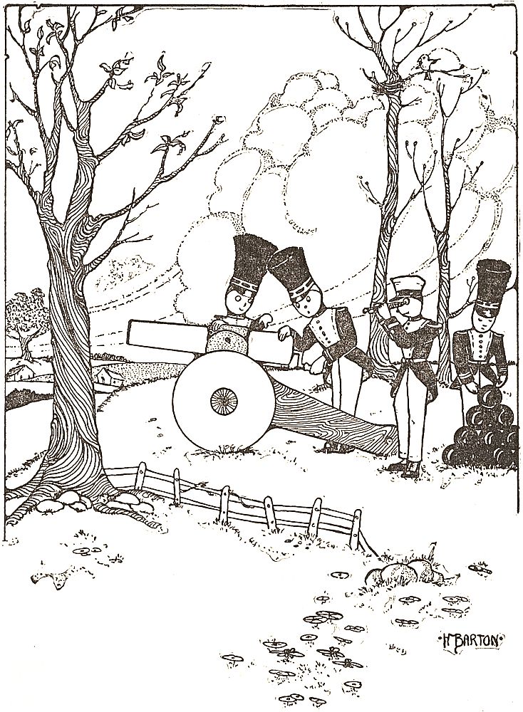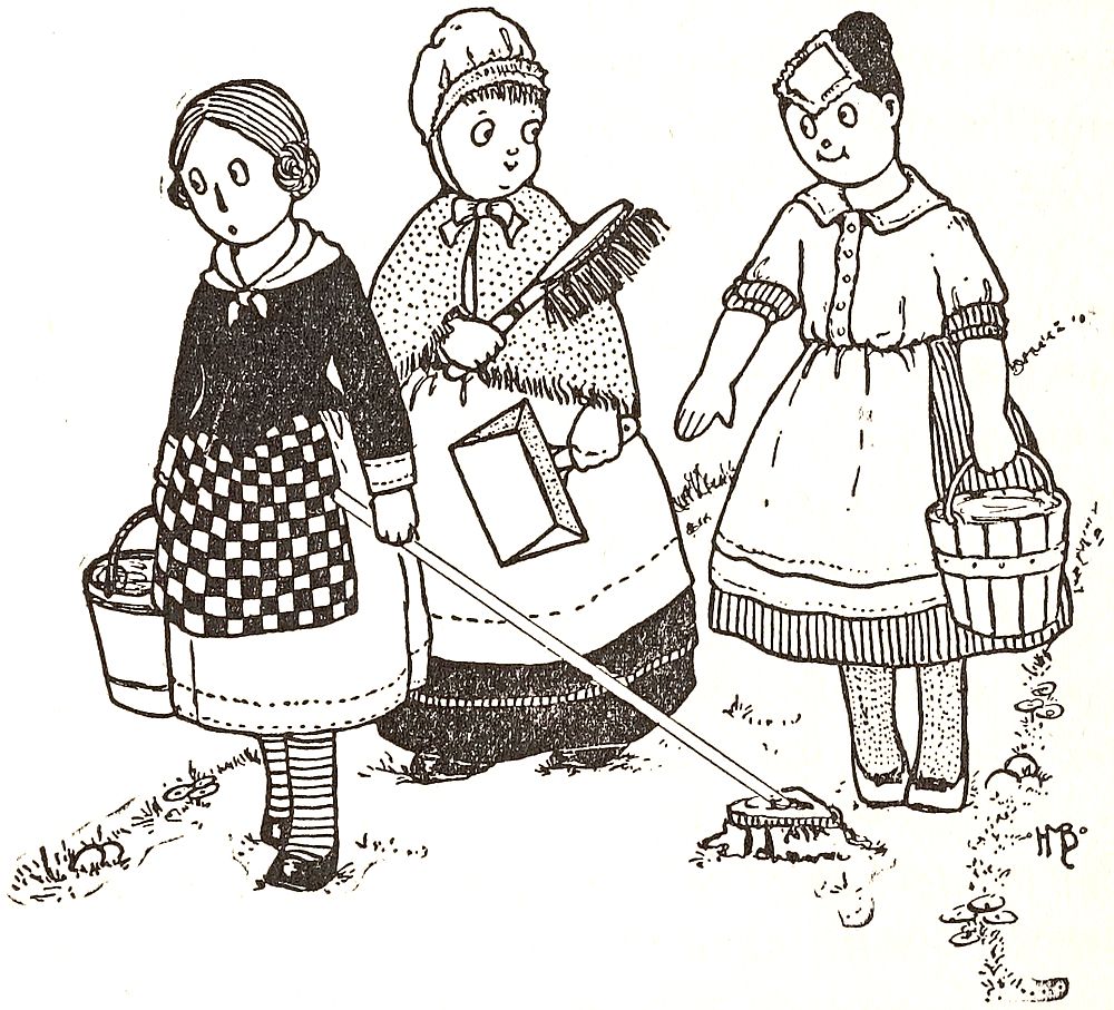 As they went up, they met a lot of female dolls coming down with pails and mops and brooms. These were the char-dolls who had been cleaning up the citadel, and it speaks well for their sense of duty that they had not left off their work during the bombardment. But they were all wives of soldiers, and had been trained to do their duty, whate’er befell.