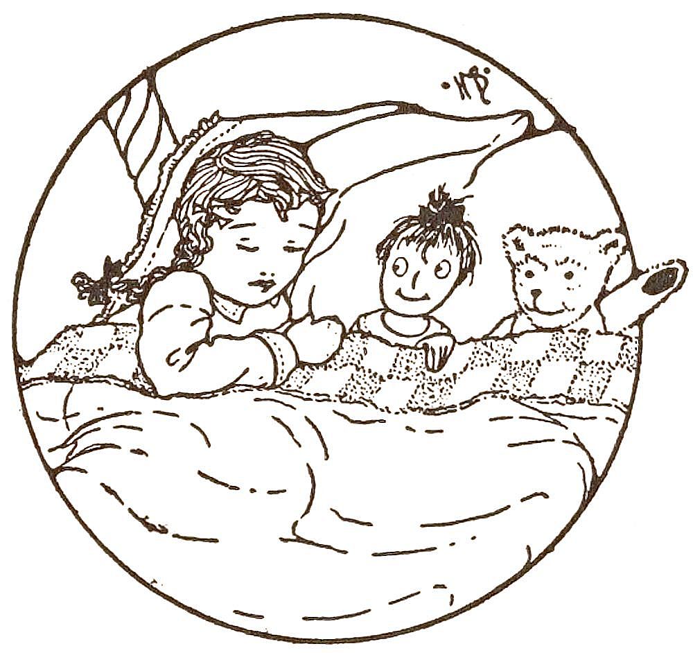 So Peggy went to sleep hugging Wooden in her arms; and Teddy lay on his back on the pillow on the other side of her, with one paw stuck up in the air and the rest of him under the bedclothes.