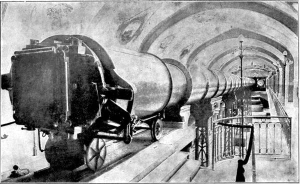 One of the greatest engineering undertakings in the world is connected with the manufacture of electric current. Niagara, the “Thunder of the Waters” as the Indians called it, has been harnessed to produce electrical energy, convertible at will into motion, heat, or light. The falls pass all the water overflowing from nearly 100,000 square miles of lakes, which in turn drain a far larger area of territory. Upwards of 10,000 cubic yards of water leap over the falls every second, and are hurled downwards for more than 200 feet, with an energy of eight or nine million horse-power! In 1886 a company determined to turn some of this huge force to account. They bought up land on the American bank, and cut a tunnel 6700 yards long, beginning a mile and a half above the falls, and terminating below them. Water drawn from the river thunders into the tunnel through a number of wheel pits, at the bottom of each of which is a water-turbine developing 5000 horse-power. The united force of the turbines is said to approximate 100,000 horse-power; and as if this were but a small thing, the same Company has obtained concessions to erect plant on the Canadian bank to double or treble the total power.