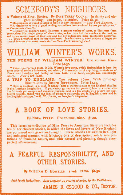 A FEARFUL RESPONSIBILITY, AND OTHER STORIES.
