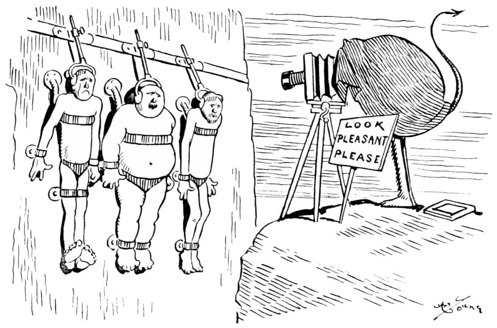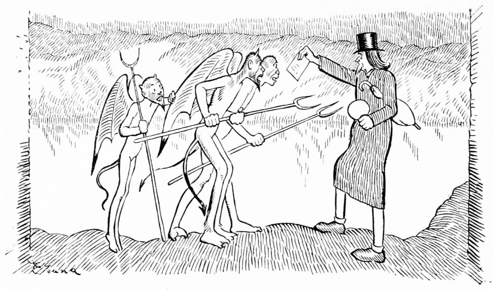 This volume contains seventy sketches and a dozen full-page pictures now printed for the first time. It also includes most of the drawings originally published in “Hell-up-to-Date.” Others were published in the “Cosmopolitan Magazine,” and a few were printed in the New York “Evening Journal” and “Judge.” Acknowledgment is due the Editors of the publications mentioned for permission to reprint them in book form.
