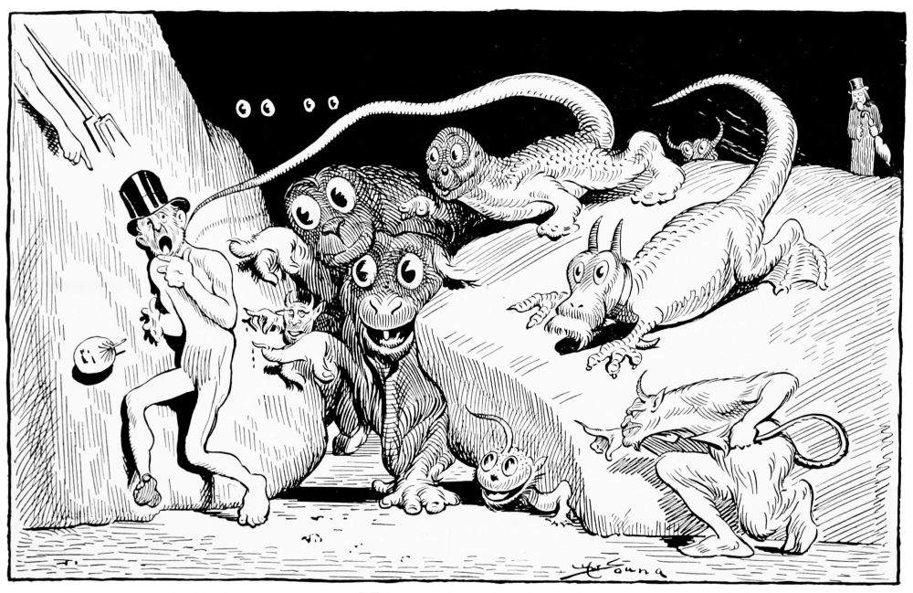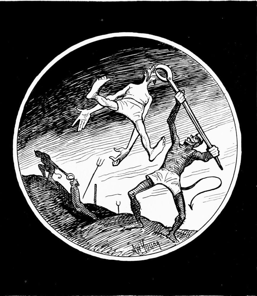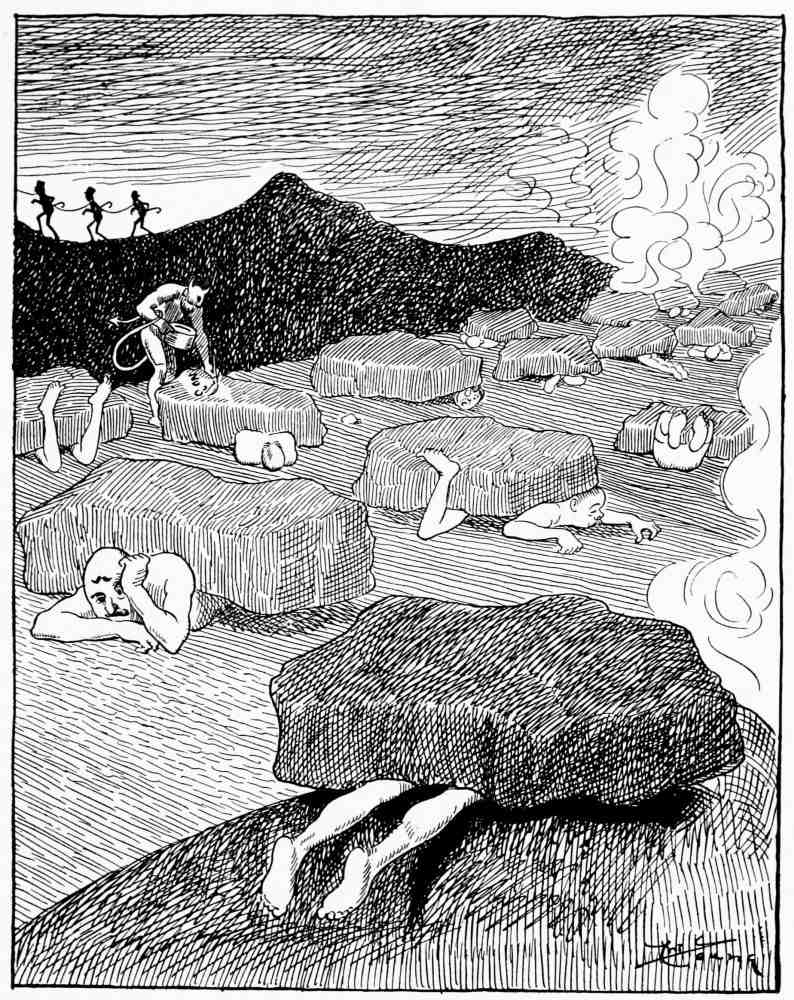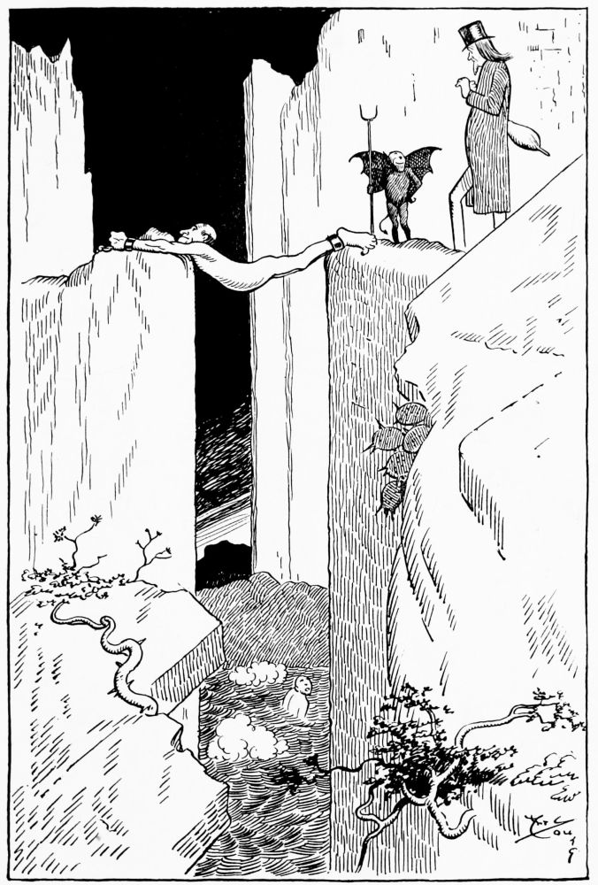 Perhaps it is unnecessary to add that the author has taken many liberties with Mr. Hunt’s text. The condition of the documents necessitated certain guess-work, and he has freely added a number of Inferno pictures that were drawn long before Hiprah Hunt’s valuable papers came to his notice.
