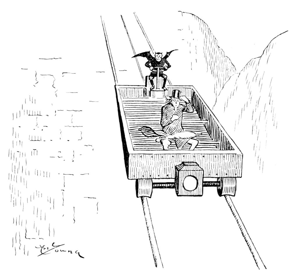 Hiprah Hunt finds himself in great danger of being cast into Hell-fire before he can make known the object of his presence. When he explains that he has been a lifelong expounder of the future punishment theory, that his purpose is to explore the region and go back to earth with the proof of his belief, Satan shows great courtesy. He immediately telephones to the heads of the departments in his realm to assemble at Plutoblitzz, the Central Station of the region, and to receive Mr. Hunt with a great ovation.