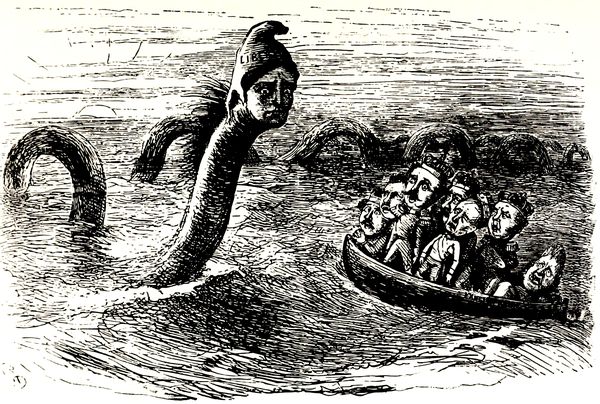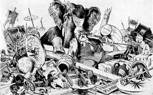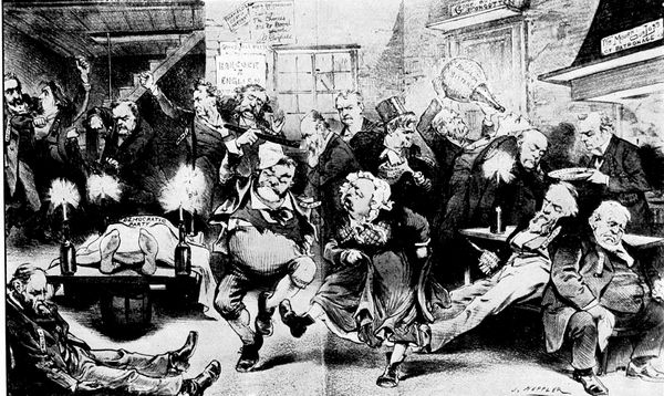 The famous redrawn cartoon which in its original form depicted Mr. Cleveland and the Democratic Party disastrously routed at the polls in 1892.