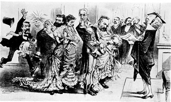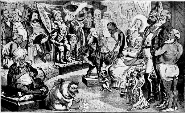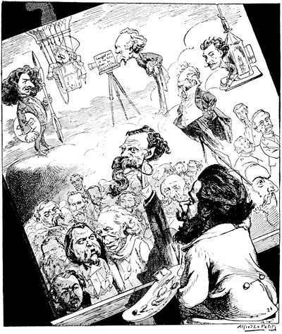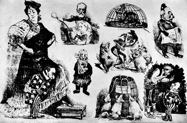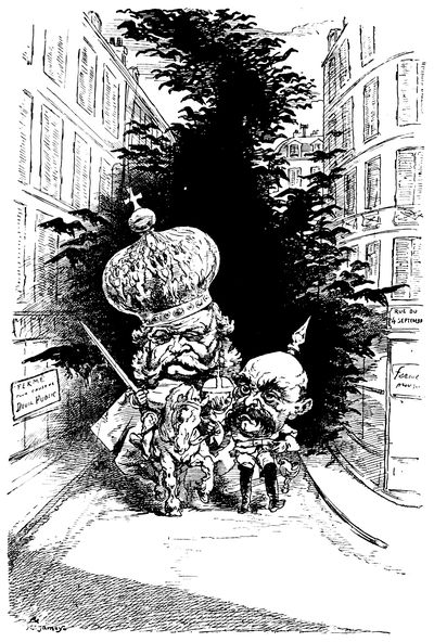 Of such men, and the younger draughtsmen of to-day, much more might be written with sympathetic understanding and enthusiasm. But most of them belong rather to the century that has just begun rather than that which has lately closed, and a hundred years from now, whoever attempts to do for the twentieth century a service analogous to that which has here been undertaken for the nineteenth, will find an infinitely ampler and richer store of material, thanks to (p. 363) this group of younger satirists in the full flood of their enthusiasm, who are valiantly carrying on the traditions of the men of the past—of Leech and Tenniel, of Daumier, and Philipon, and Cham and André Gill, of Nast and Keppler and Gillam, and who have already begun to record with trenchant pencil the events that are ushering in the dawn of the new century.