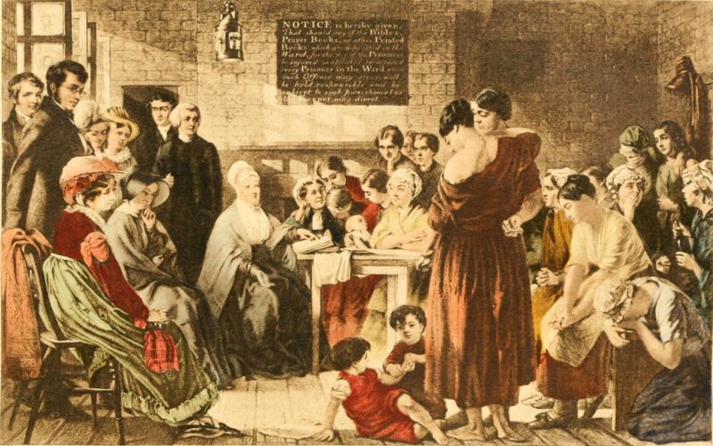 The sympathies of the Quaker lady, Elizabeth Fry, were aroused by the sadly neglected condition of the women's quarters in Newgate in 1813. She formed the Ladies' Committee which secured many important reforms from Parliament. She was a constant visitor to the old prison, where she brought hope and comfort, and wrought great changes.