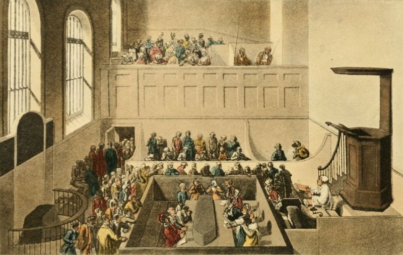 The gaol distemper is but sparingly mentioned throughout the seventeenth century, but as the conditions were precisely the same, it is pretty certain that the disease existed then, as before and after. But in the first half of the eighteenth century we have detailed accounts of three serious and fatal outbreaks. The first was at the Lent Assizes held in Taunton in 1730, "when," Howard says, "some prisoners who were brought thither from the Ilchester gaol infected the court; and Lord Chief Baron Pengelly, Sir James Shepherd, sergeant, [23]John Pigott, Esq., sheriff, and some hundreds besides, died of the gaol distemper." The second case occurred also in the west country, at Launceston, where "a fever which took its rise in the prisons was disseminated far and near by the county assizes, occasioned the death of numbers, and foiled frequently the best advice." It is described as a contagious, putrid, and very pestilential fever, attended with tremblings, twitchings, restlessness, delirium, with, in some instances, early frenzy and lethargy; while the victims broke out often into livid pustules and purple spots. The third case of gaol fever was in London in 1750, and it undoubtedly had its origin in Newgate. At the May Sessions at the Old Bailey there was a more than usually heavy calendar, and the court was excessively crowded. The prisoners awaiting trial numbered a hundred, and these were mostly lodged in two rooms fourteen feet by seven, and only seven feet in height; but some, and no doubt all in turn, were put into the bail dock; many had long lain close confined in the pestiferous wards of Newgate. The court itself was of limited dimensions, being barely thirty feet square, and in direct communication with the bail dock and rooms beyond, whence an open window, at the farther end of the room, carried a draught poisoned with infection towards the judges' bench. Of these four, viz., Sir Samuel Pennant, the Lord Mayor, Sir Thomas Abney and Baron Clark, the judges, and Sir Daniel Lambert, alderman, [24]were seized with the distemper, and speedily died; others, to the number of forty, were also attacked and succumbed. Among them were some of the under-sheriffs, several members of the bar and of the jury; while in others of lesser note the disease showed itself more tardily, but they also eventually succumbed. Indeed, with the exception of two or three, none of those attacked escaped. The symptoms were the same as these already described, including the delirium and the spots on the skin.