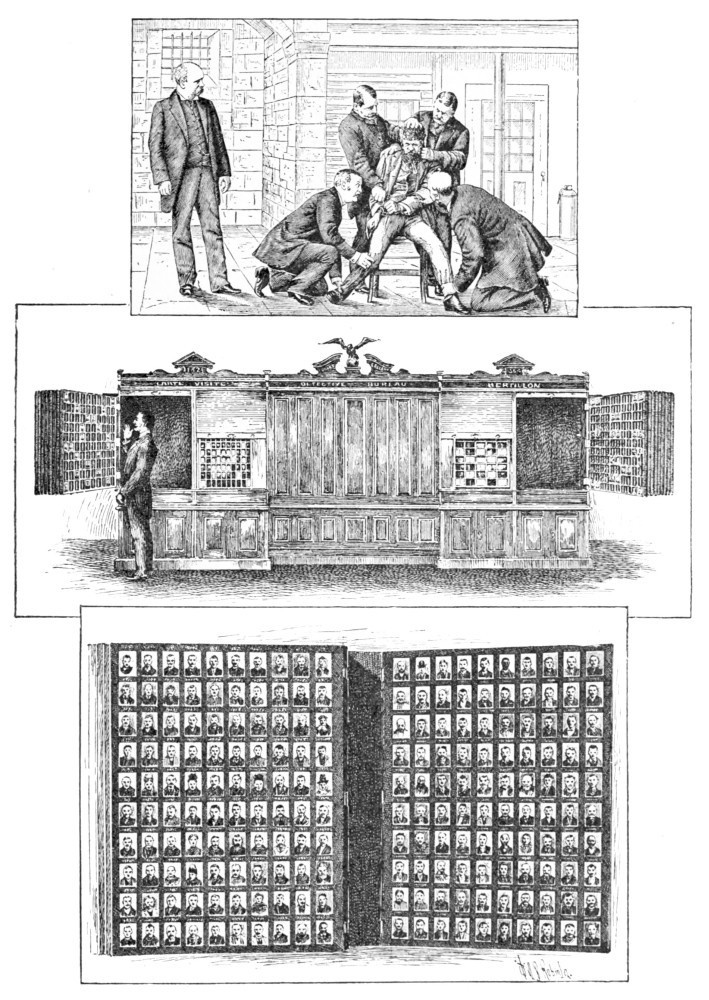 Finger-prints and foot-marks have again and again been cleverly worked into undeniable evidence. The impression of the first is personal and peculiar to the individual; by the latter the police have been able to fix beyond question the direction in which criminals have moved, their character and class, and the neighbourhood that owns them. The labours of the scientist have within the last few years produced new methods of identification, which are invaluable in the pursuit and detection of criminals. The patient investigations of a medical expert, M. Bertillon, of Paris (one of the witnesses in the Dreyfus case), developing the scientific discovery of his father, have proved beyond all question that certain measurements of the human{16} frame are not only constant and unchangeable, but peculiar to each subject; the width of the head, the length of the face, of the middle finger, of the lower limbs from knee to foot, and so forth, provide such a number of combinations that no two persons, speaking broadly, possess them all exactly alike. This has established the system of anthropometry, of “man measurement,” which has now been adopted on the same lines by every civilised nation in the world. The system, however, is on the face of it a complicated one, and at New Scotland Yard it has now been abandoned in favour of the finger-prints method. Mr. Francis Galton, to whose researches this mode of identification is due, has proved that finger prints, exhibited in certain unalterable combinations, suffice to fix individual identity, and his system of notation, as now practised in England, will soon provide a general register of all known criminals in the country.
