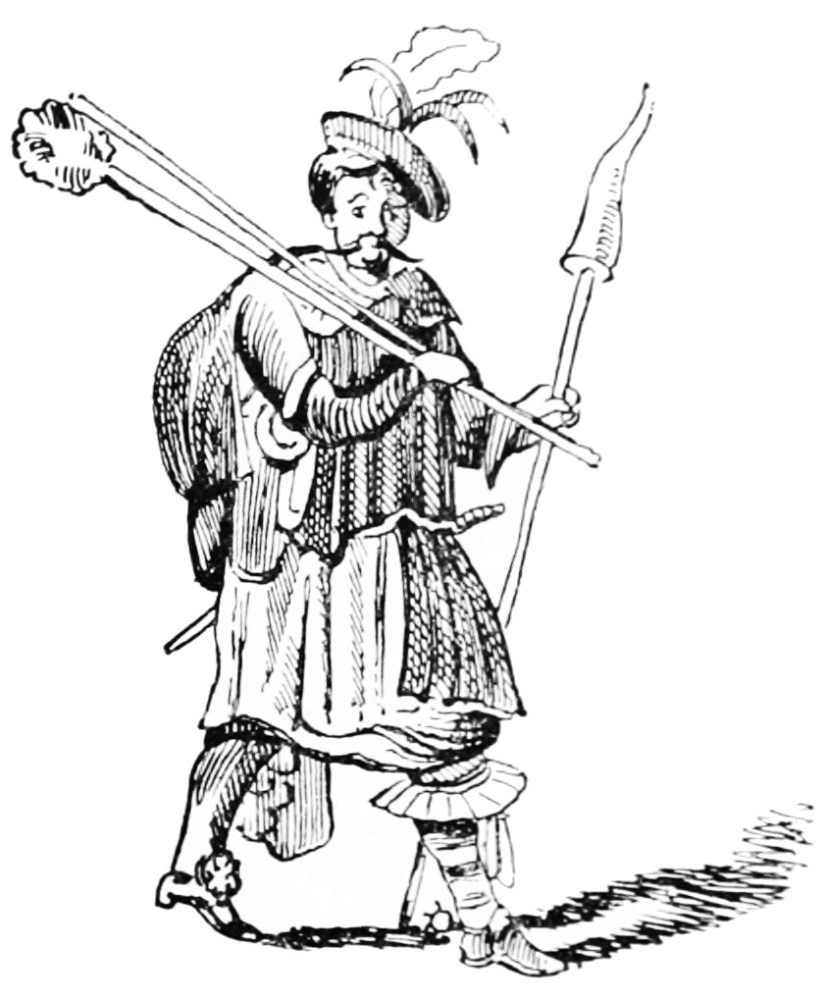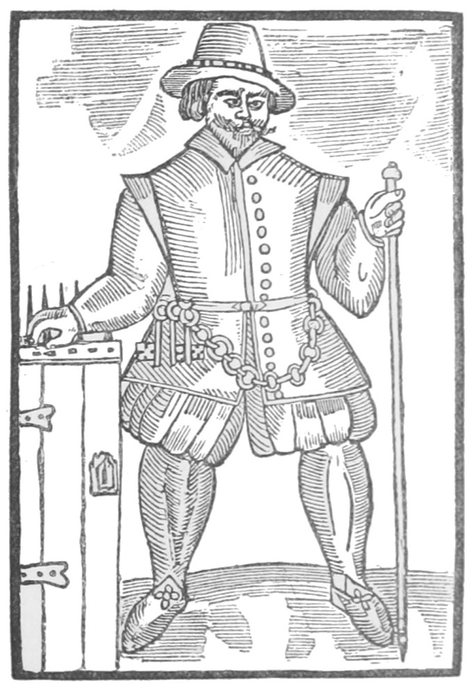 Nor were these empty threats. The laws and ordinances against prowlers and vagabonds, or “night-walkers,” as they were officially styled, were continually enforced by the attachment of offenders. Many cases are given in the memorials of London. Thus, 4 Edw. II. A.D. 1311: Elmer de Multone was attached on indictment as a common night-walker in the ward of Chepe; “in the day,” it was charged, “he was wont to entice persons and strangers unknown to a tavern and there deceive them by using false dice.” He was furthermore indicted “in Tower ward for being a cruiser and night-walker against the peace, as also for being a common ‘rorere.’[9] Multone was committed to prison. Others met with similar treatment. John de Rokeslee was attached as being held suspected of evil and of beating men coming into the city;” “Peter le Taverner, called Holer,” the same, and for going with sword and buckler and other arms; John Blome was indicted “as a common vagabond[10] for committing batteries and other mischiefs in the ward of Aldresgate and divers other wards.” “A chaplain,” our modern curate, Richard Heryng, was attached on similar charges, but was acquitted. Not only were the “roarers” themselves indicted when taken in this act, but also those who harboured them, like John Baronu mentioned in the same document as attached “for keeping open house at night, and receiving night-walkers and players at dice.” The prohibition against fencing-masters was also rigorously enforced, as appears by the indictment of “Master Roger le Skirmisour, for keeping a fencing school for divers men, and for enticing thither the sons of respectable persons so as to waste and spend the property of their fathers and mothers upon bad practices, the result being that they themselves become bad men. Master Roger, upon proof of a jury that he was guilty of the trespasses aforesaid, was committed to Newgate.”