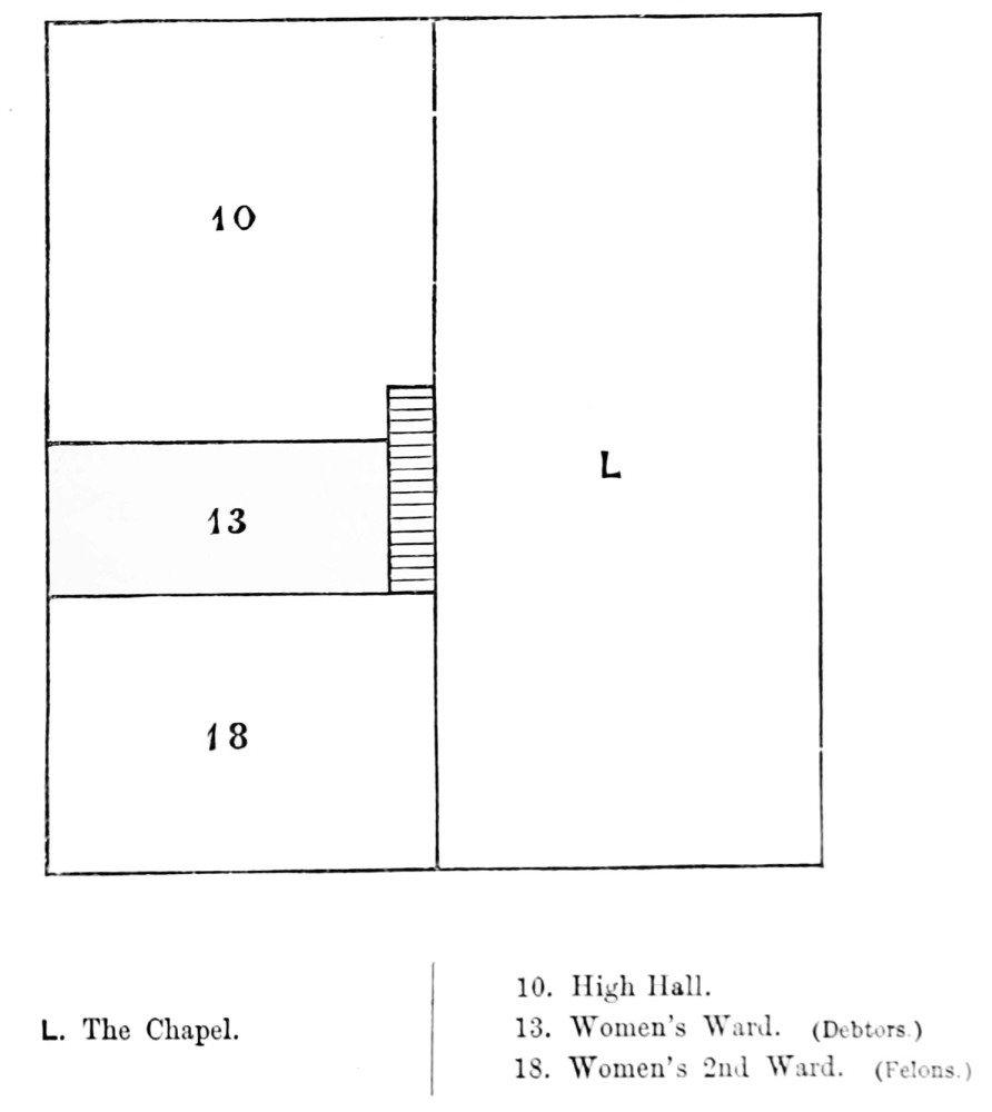 The disclosure of these frightful evils led to a Parliamentary inquiry in 1814, and the worst facts were fully substantiated.[3] The prison was not water-tight, rain came in through the roof; broken windows were left unglazed; it was generally very dirty; the gaoler admitted that with its smoked ceilings and floors of oak, caulked with pitch, it never could look clean. The prisoners were not compelled to wash, and cleanliness was only enforced by a general threat to shut out visitors. Sometimes a more than usually filthy person was stripped, put under the pump, and forced to go naked out into the yard. The poor debtors were in terrible straits, herded together, and dependent upon the casual charities for supplies. Birch, the well-known tavern-keeper, and others, sent in broken victuals, generally the stock meat which had helped to make the turtle-soup for civic feasts. The chaplain took life very easy, and, beyond preaching to those who cared to attend chapel, ministered but little to the spiritual wants of his charge. His indifference was strongly condemned in the report of the Commons Committee. The chapel congregation was generally disorderly: prisoners yawned, and coughed, and talked enough to interrupt the service; women were in full view of the men, and many greetings, such as “How do you do, Sall?” often passed from pew to pew. No attempt was made to keep condemned convicts, male or female, separate from other prisoners; they mixed freely with the rest, saw daily any number of visitors, and had unlimited drink.
