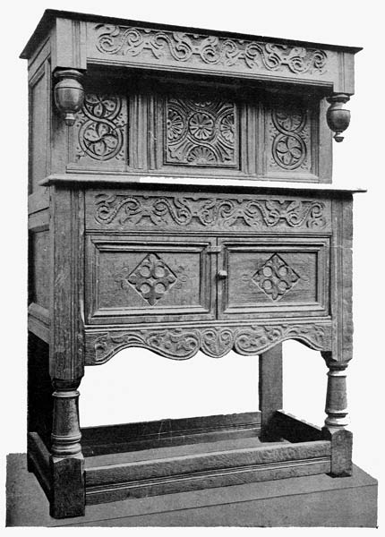 SIDEBOARD OF CARVED OAK. ENGLISH, SEVENTEENTH CENTURY.