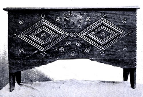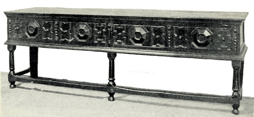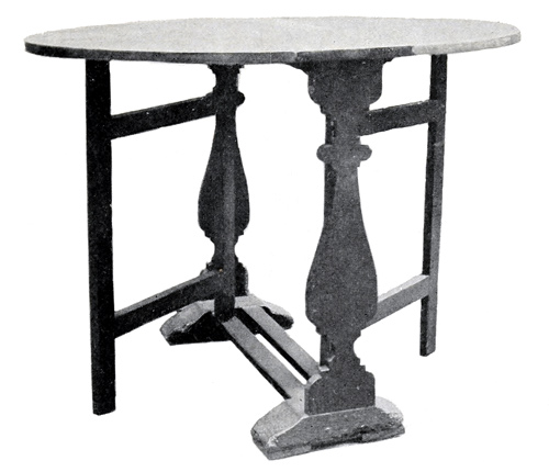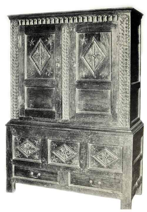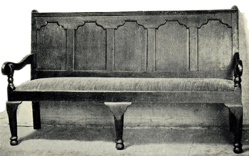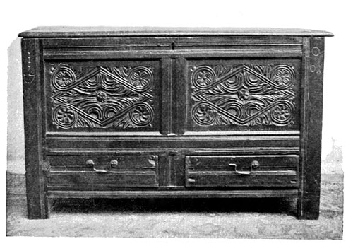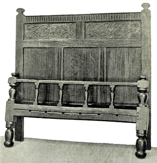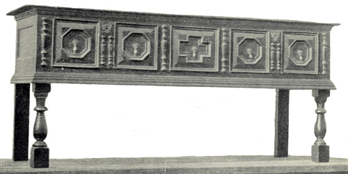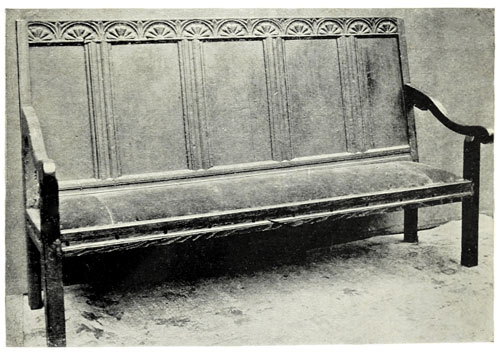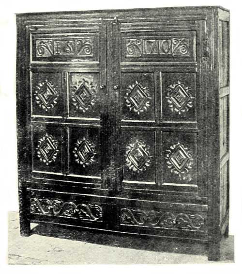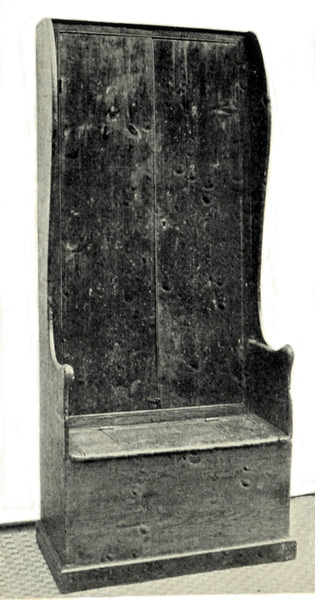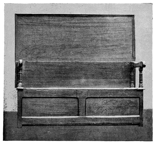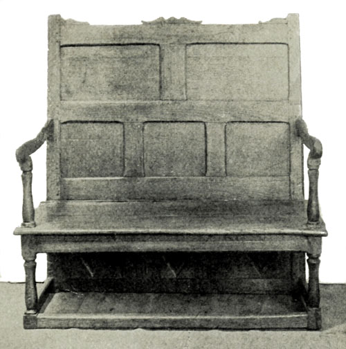 In regard to the scientific study of farmhouse and cottage furniture, the ideal arrangement is that followed at Skansen, Stockholm, and at Lyngby, near Copenhagen. In the former a series of buildings have been erected in the open air, in connection with the Northern Museum, gathered from every part of Sweden, retaining their exterior character and fitted with the furniture of their former occupants. It was the desire of the founder, Dr. Hazelius, to present an epitome of the national life. Similarly at Lyngby, an adjunct of the Dansk Folkemuseum at Copenhagen, the life-work of Hr. Olsen has been given to gathering together and re-erecting a large number of old cottages and farmhouses from various districts in Denmark, from Iceland, the Faroe Islands, and from Norway and Sweden. These have their obsolete agricultural implements, and old methods of fencing and quaint styles of storage. The furniture stands in these specimen homes exactly as if they were occupied. It is a remarkable open-air museum, and the idea is worthy of serious consideration in this country. Old cottages and farmhouses are fast disappearing, and the preservation of these beauties of village and country life should appeal to all lovers of national monuments.[1]