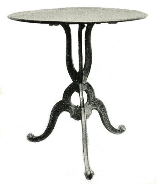 - Tables— Adam style, 186 Arcaded spandrils, illustrated, 179 Bedfordshire types, 283 Cambridge types, 283 Collapsible form (Charles II.), 103 Cross stretcher, X form, 103 Cupid's bow underframing, 107; illustrated, 109 Elizabethan bulbous-leg form, 60 Essex types, 283 Flap tables (Queen Anne), 89; (Georgian), illustrated, 183 Gate-leg, 85-112 Gothic trestle, gate-leg table, 89 Hertfordshire types, 283 Isle of Man table, 283 Scalloped-edge tea-table, illustrated, 181 Scalloped underframing, illustrated, 73 Sixteenth-century style, 52 Spandrils, arcaded, illustrated, 179 Stretchers, splat form, 89; illustrated, 97 Tea-table, Queen Anne style, 185 Three-legged, 283 Underframing, Cupid's bow, illustrated, 109 Various local types, 283 Yorkshire type, 89