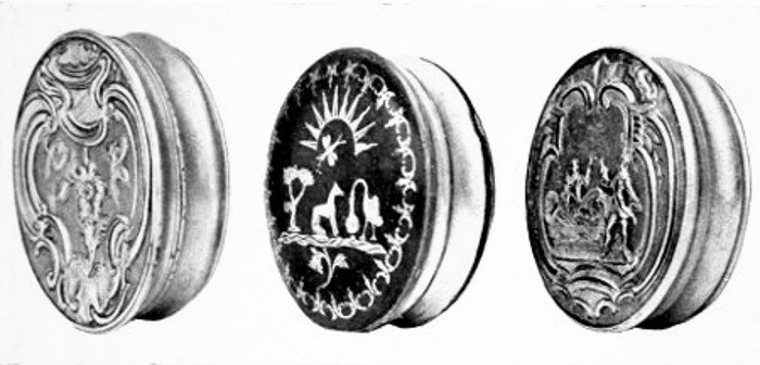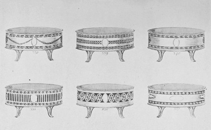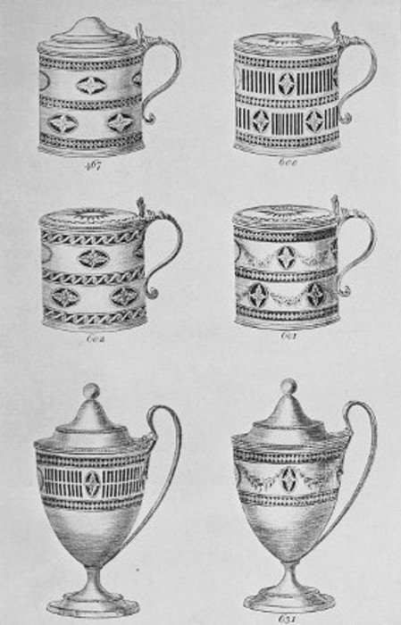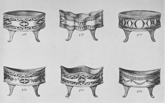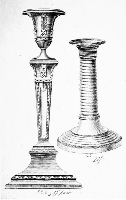 By permission of the Board of Education I am reproducing several designs from the copper-plate illustrations of the old Catalogues and [9] Pattern Books issued to buyers of their wares on the Continent of Europe by the leading firms of Sheffield in the eighteenth century.