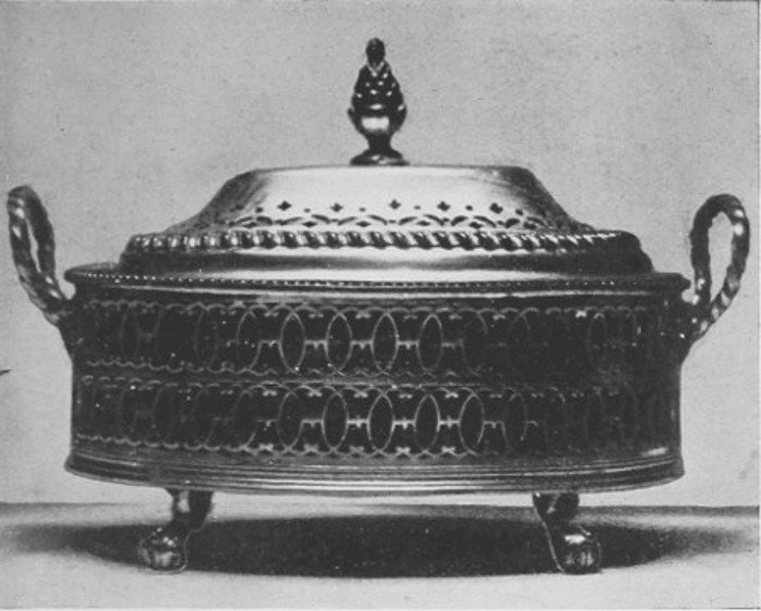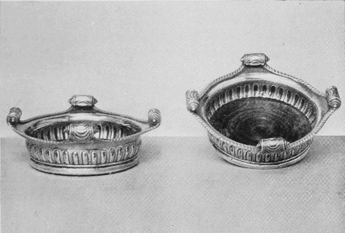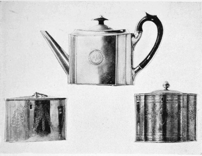 In regard to marks on old Sheffield and other plated ware, in view of strictures on marks laid down by Acts of Parliament, I have come to the conclusion that marks on old Sheffield plated ware are somewhat negligible, as they lack the authoritative exactitude of those placed by law on silver plate. There were marks when the Sheffield makers simulated silver marks till they alarmed the silversmiths and were stopped by statute. Then came a hiatus. Then again they adopted trade marks plentifully found, but these marks are not always found on examples of the best period. So in adjudging old Sheffield plated ware, marks have a subsidiary place, and they are accorded a subsidiary place in this volume.