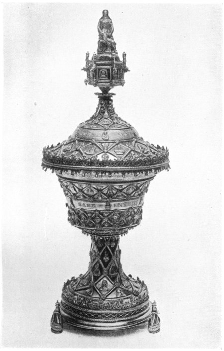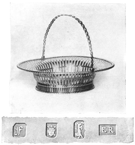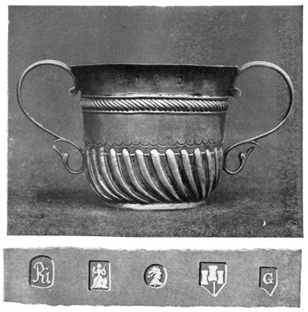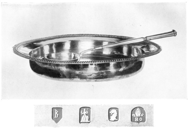 With old china, and probably with old furniture, the taste for collecting is oftentimes an acquired one, but it is in the Englishman’s blood to ruminate over his old plate, and the hall-marks of the assay offices in London and in the provinces, in Scotland and in Ireland, have been placed thereon with aforethought. The plate closet is cousin to the strong-box, inasmuch as the coin of the realm and gold and silver plate have been subjected to stringent laws extending over a period of five hundred years. The technical word “hall-mark” has become a common term in the language synonymous with genuineness. The strictest supervision, under the parental eye of the law, has upheld the dignity of the silversmiths guarantees. Hence the pride of possession of old silver. Pictures and furniture and engravings whose ancestry is doubtful thrust themselves in the market{12} without fear of the watchful official eye. But old silver bearing the hall-marks of ancient and honourable guilds of silversmiths, stamped at the accredited assay offices, is, with few exceptions, what it purports to be. It is a proud record and a splendid heritage.