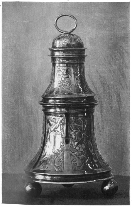 In covering so wide a field in so small a volume, much has had to be omitted. There are many volumes on old English silver plate, but in regard to research, the work of Mr. C. J. Jackson, “English Goldsmiths and their Marks,” with over eleven thousand marks, stands alone and supplants all other volumes. Every collector must regard this work as the bible of silver-plate collecting.