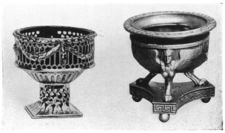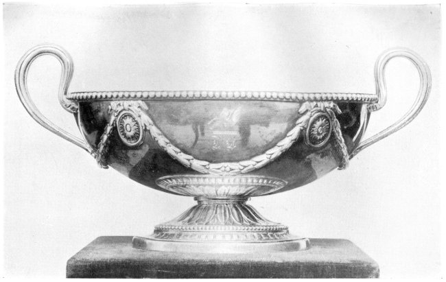 Messrs. Crichton Brothers have afforded me access to their records, including the use of copyright photographs of specimens which have passed through their hands, and courteous assistance in reproducing examples in their possession. Messrs. Elkington & Co., and Messrs. Garrard & Co., have similarly extended to me their practical aid; Messrs. John Ellett Lake & Son, of Exeter, have enabled me to do justice to the art of the Exeter silversmith, and Messrs. Harris and Sinclair, of Dublin, have enriched{15} my chapter on Irish silver. I have also to acknowledge the kindness of Messrs. Carrington & Co. for the Frontispiece and for the fine design of an Irish Dish Ring shown on the cover. Mr. A. E. Smith, my photographer, has given exceptional care in obtaining good results.