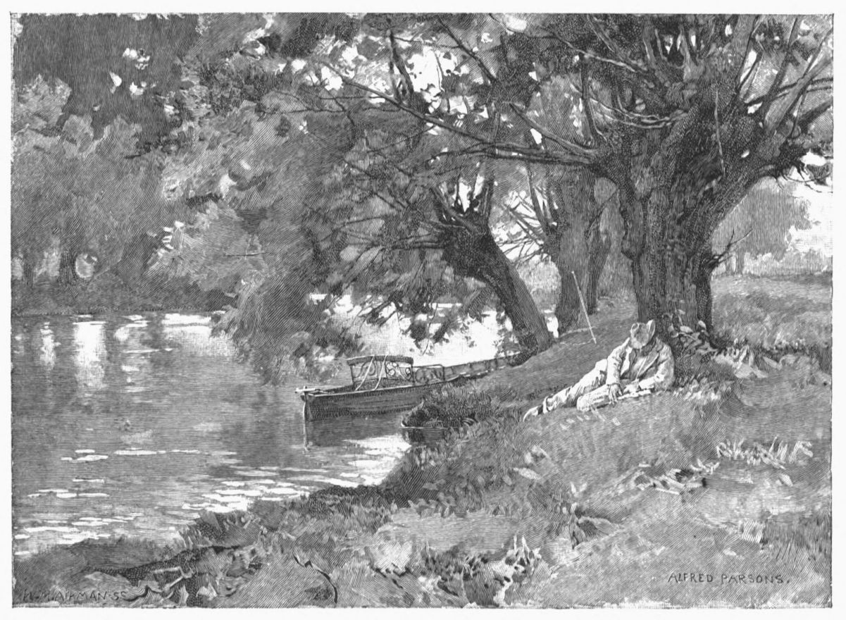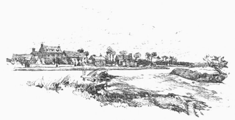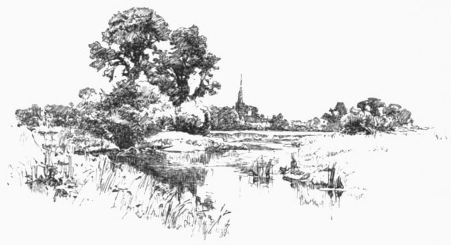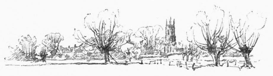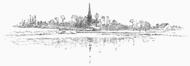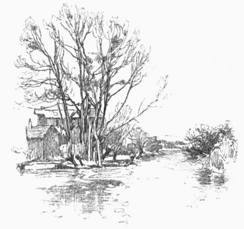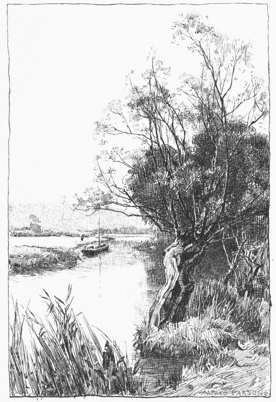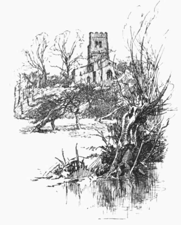 A little weather-stained church stands by Ashow shore—a church, a yew-tree, and a narrow graveyard. Close under it steals the gray river, whispers by cottage steps where a crazy punt lies rotting, by dim willow aits and eel bucks, and so passes down to silence and the mists. Seeing all{41}
