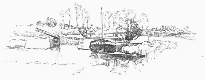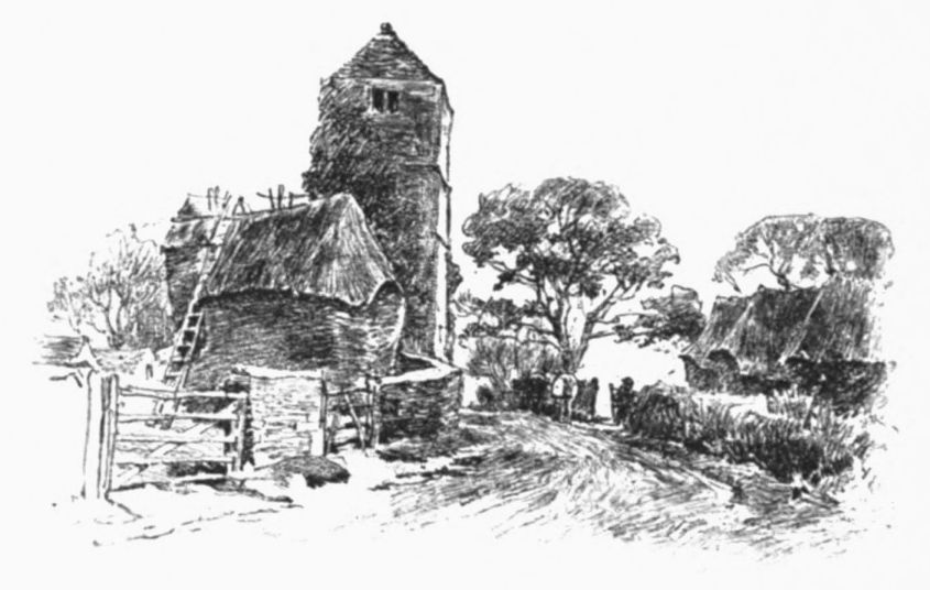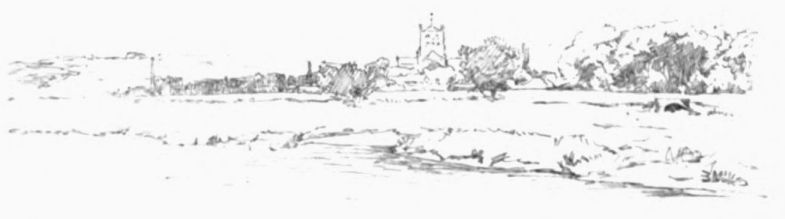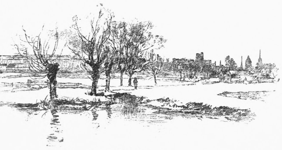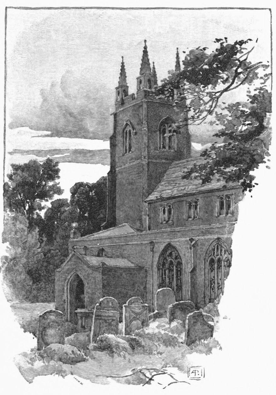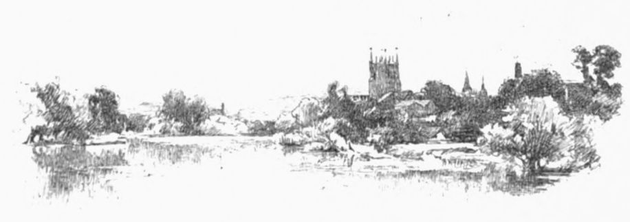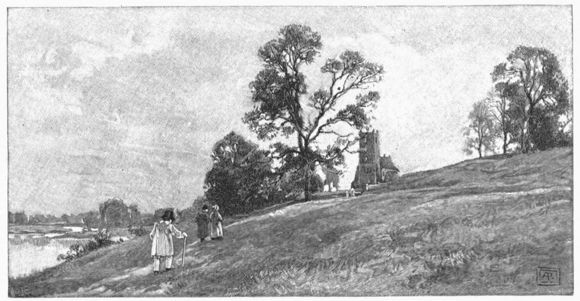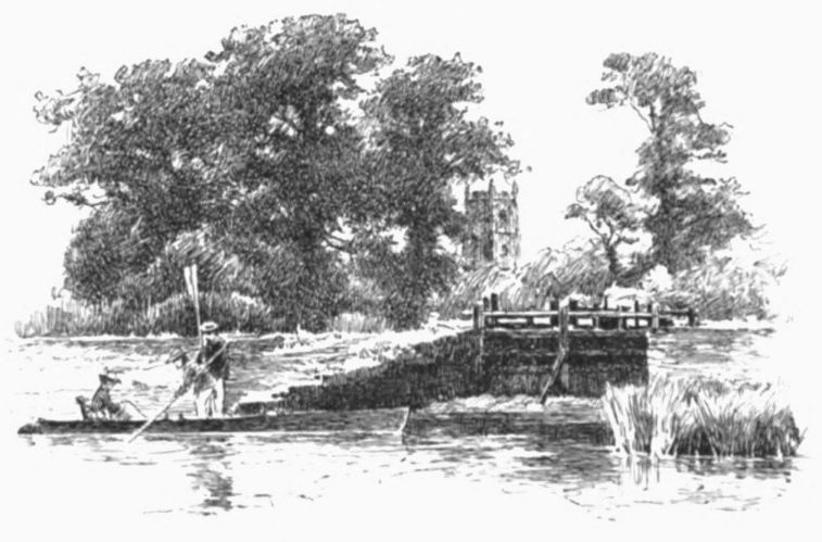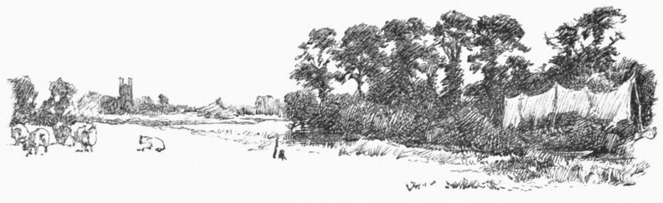 A little weather-stained church stands by Ashow shore—a church, a yew-tree, and a narrow graveyard. Close under it steals the gray river, whispers by cottage steps where a crazy punt lies rotting, by dim willow aits and eel bucks, and so passes down to silence and the mists. Seeing all{41}