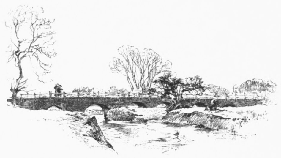 At our feet, close under the encampment, an antique bridge crosses Avon. Beside it is hollowed a sheep-washing pool, and across the road stands a little church. Tempted by its elaborate window mouldings, we poke our heads in at the door, but at once withdraw them to cough and sneeze. The place is given over to dense smoke and a small decent man, who says that a service will be held in ten minutes, and what to do with the stove he doesn’t know. So we leave him, and pass on, trudging towards Catthorpe, a mile below.