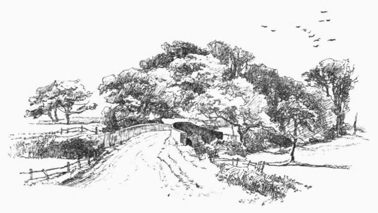 family that kept its own private gallows at Bretford, just above. Where the castle stood now thrive the brier, the elder, the dogrose, the blackthorn twined with clematis; the outer moat is become a morass, choked with ragwort and the flowering rush; the inner moat is dry, and a secular ash sprawls down its side. We left it to glide beneath a graceful Georgian bridge; past a lawn dotted with sleek cattle, a small red mill, a row of melancholy anglers, a mile of giant alders, and so down to Ryton-on-Dunsmore, the western outpost of the great heath. As the heath ended, the country’s character began to change, and all grew open. On either hand broad pastures divided us from the arable slopes where a month ago the gleaners were moving amid