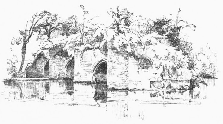 From Avon Well the spring flows to the northwest, and we follow it through “wide-skirted meads” dotted with rub{12}bing-posts and divided by stiff ox fences (the bullfinches of the fox-hunter—for we are in the famous Pytchley country), past a broad reservoir fringed with reed and poplars, and so through more pastures to Sulby Abbey. And always, as we look back, Naseby spire marks our starting-point. About three miles down, the runnel has grown to a respectable brook, quite large enough to have kept supplied the abbey fish-ponds.