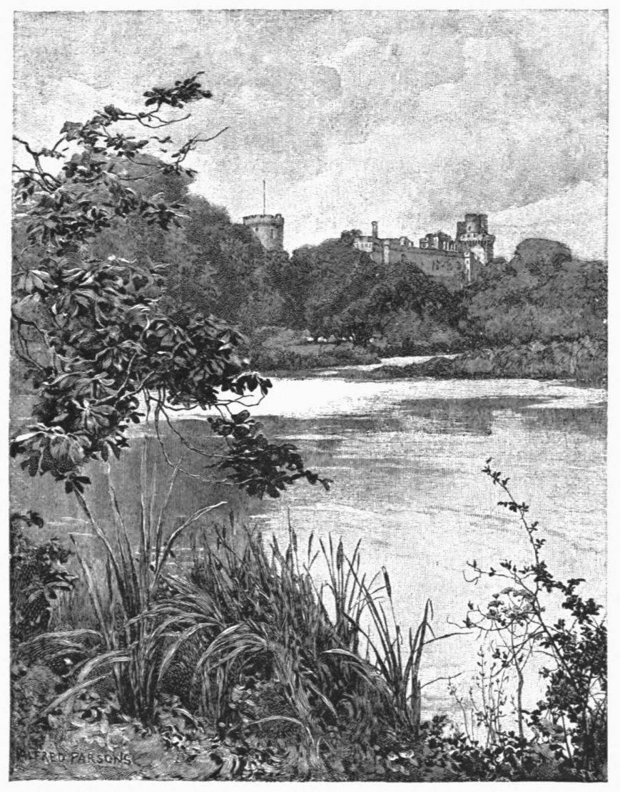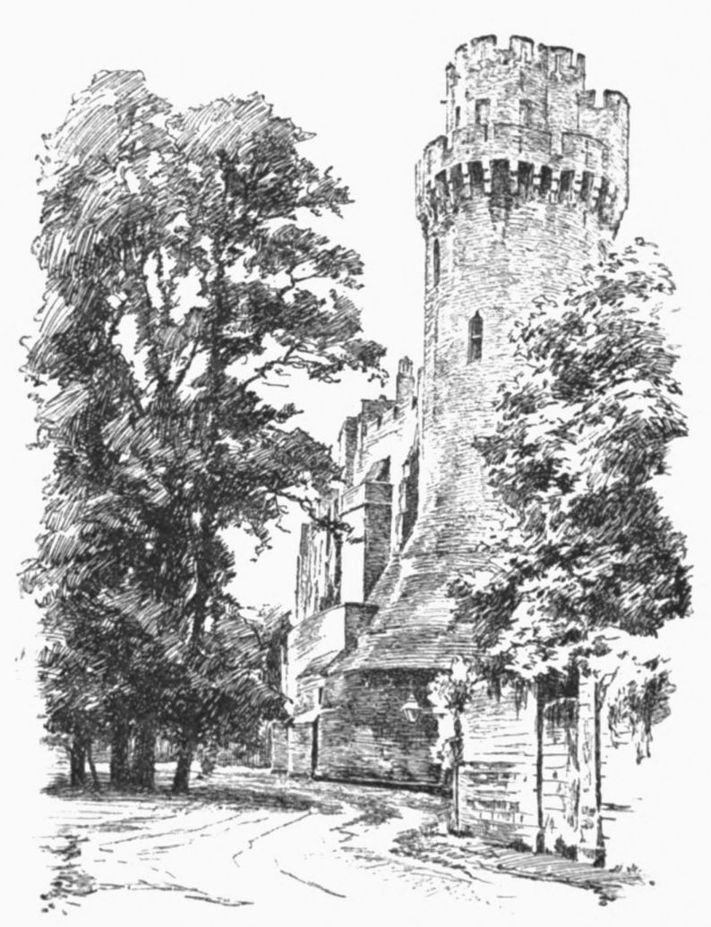 Just below, on the north bank, rises Blacklow Hill, whither, on the 19th of June, 1312, Piers Gaveston, the favorite of King Edward II., was marched out from Warwick Castle by the barons to meet his doom. His head was struck off, and, rolling down into a thicket, was picked up by a “friar preacher” and carried off in his hood. On the rock beside the scene of that grim revenge this inscription was rudely cut: “P. Gaveston, Earl of Cornwall, beheaded here + 1312;” and to-day a simple cross also marks the spot.