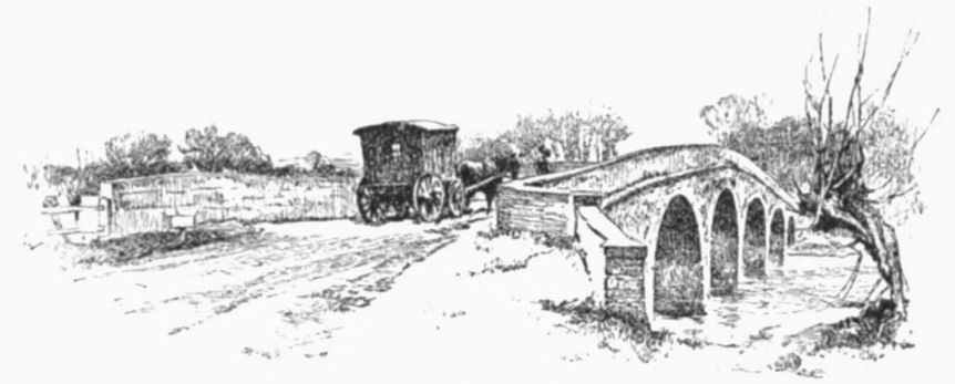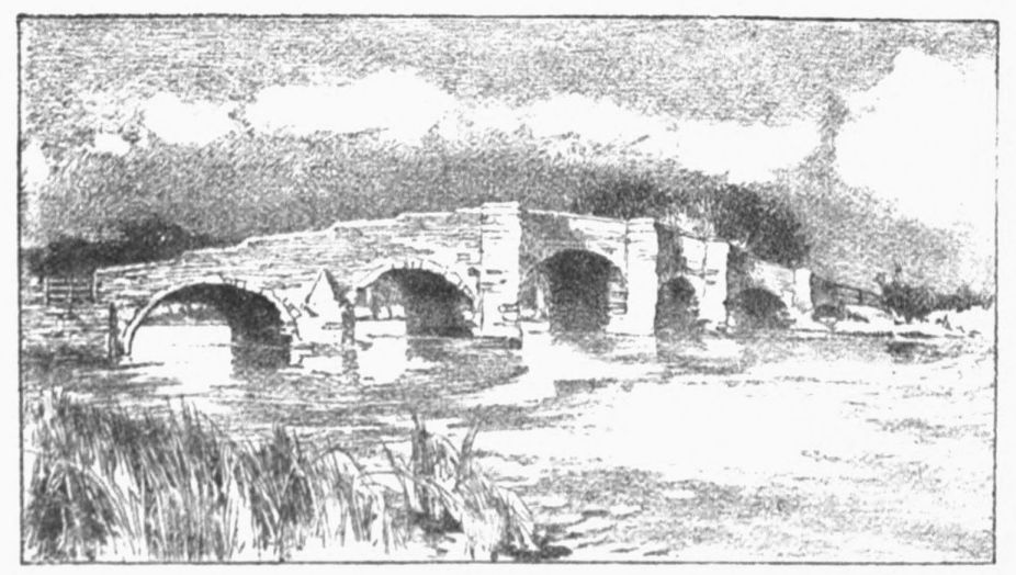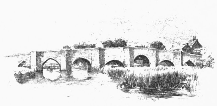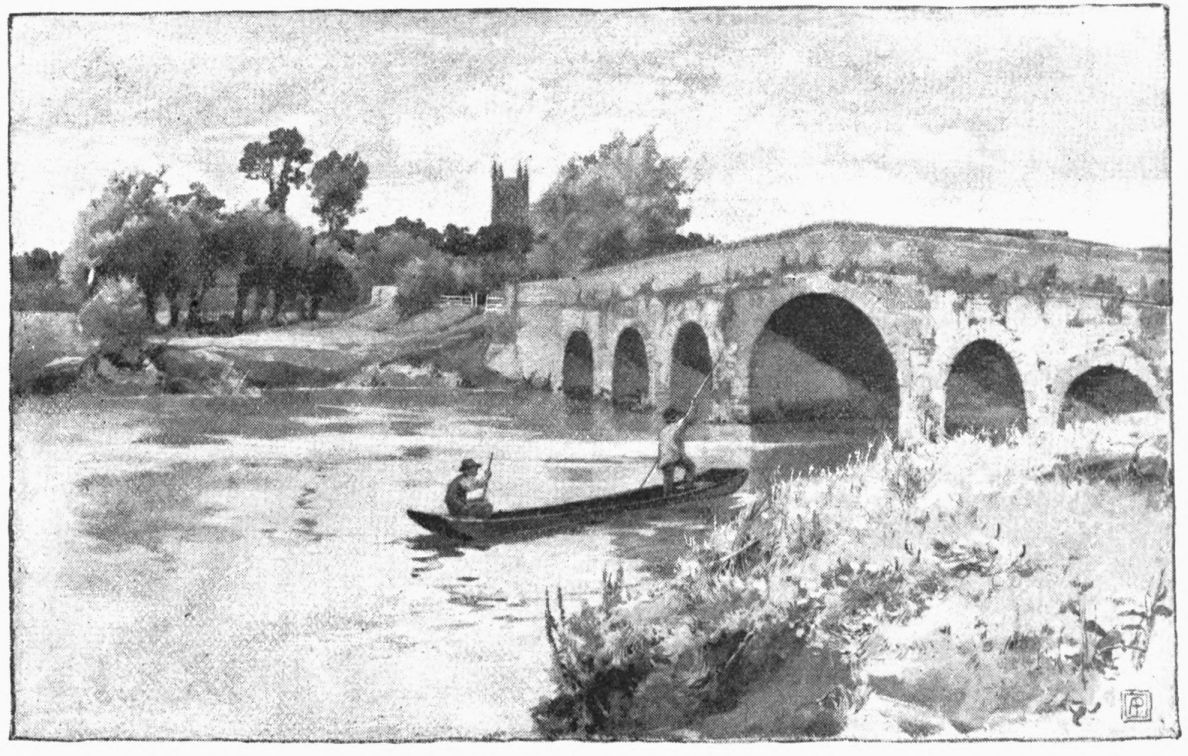 (or Dove) Bridge, Watling Street pushes across the river with Roman directness. This bridge marks the meeting-point of three counties, for beyond it we step into Warwickshire. It is indifferently modern, yet “the scene, though simple, aided by a group of cattle then passing, had sufficient attraction in the meridian of a summer sun to induce” the egregious Ireland “to attempt a sketch of it as a picturesque view,” and supply us with a sentence to be quoted a thousand times during our voyage, and always with ribald appreciation.