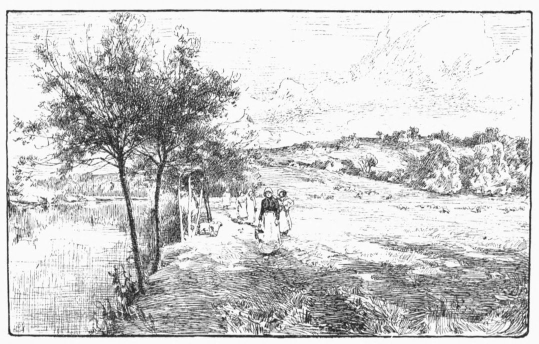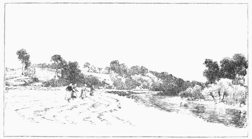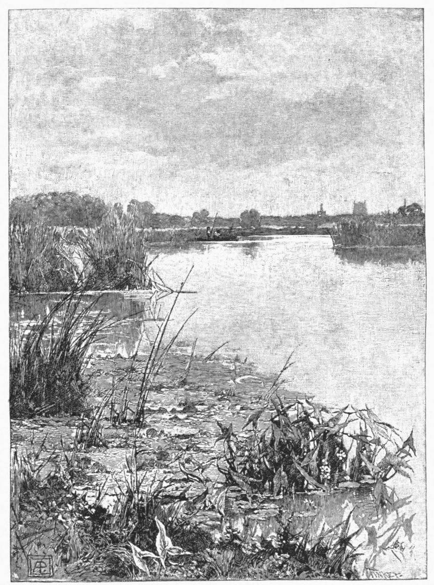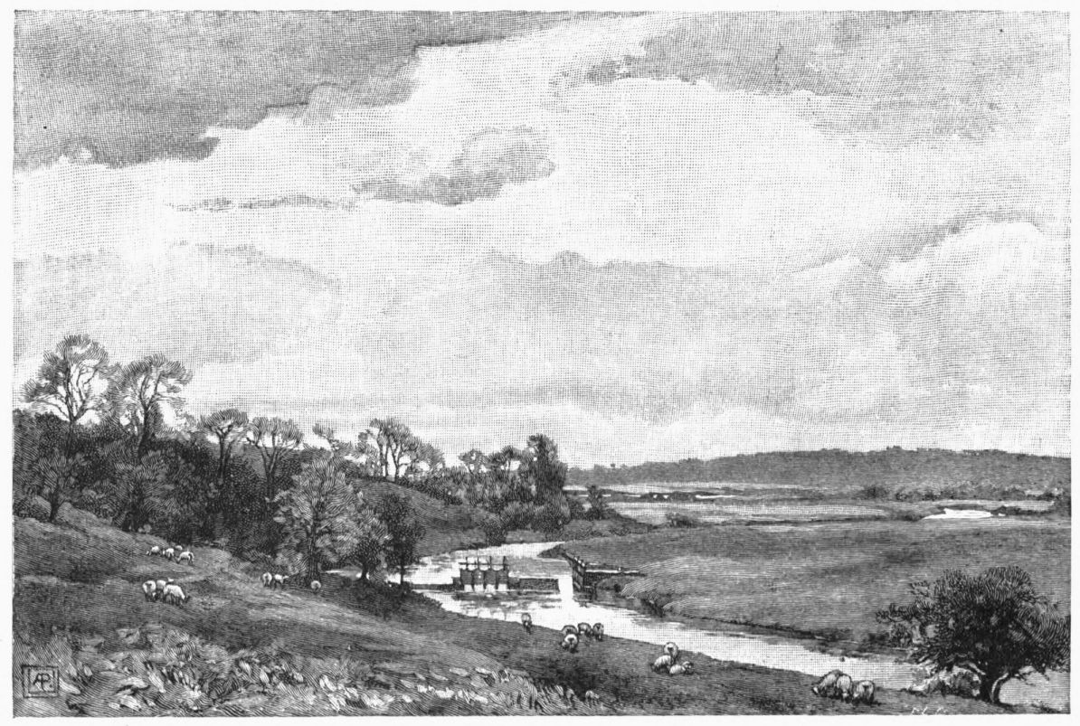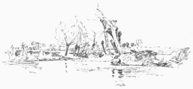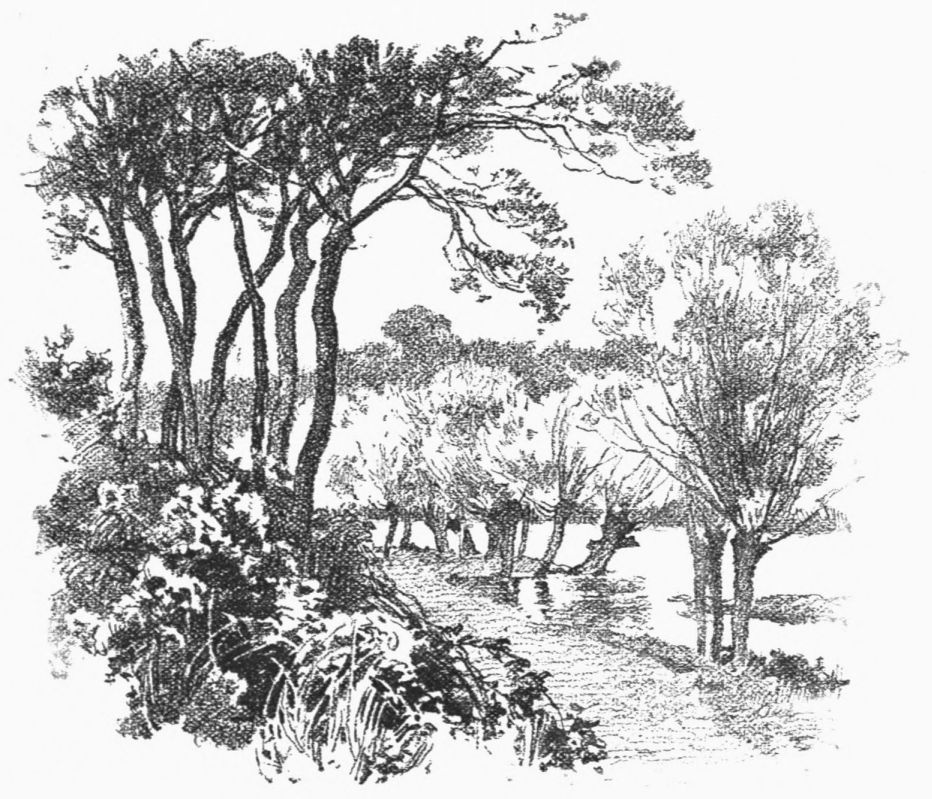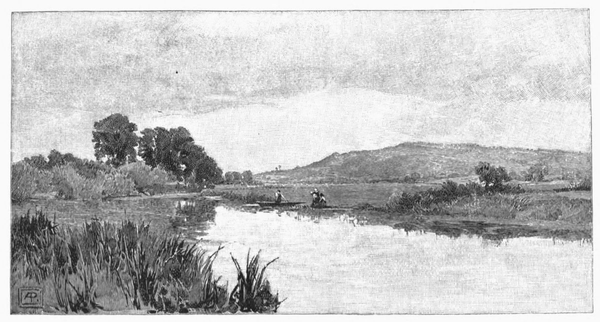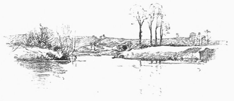 while ahead the water-rat dives, or the moor-hen splashes from one green brim to another; and around the land is slowly changing from the monotonous to the “up-and-down-hilly;” and we, passing through it all, are thankful.{27}