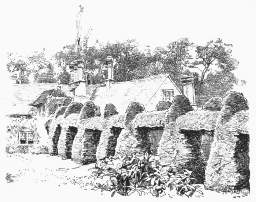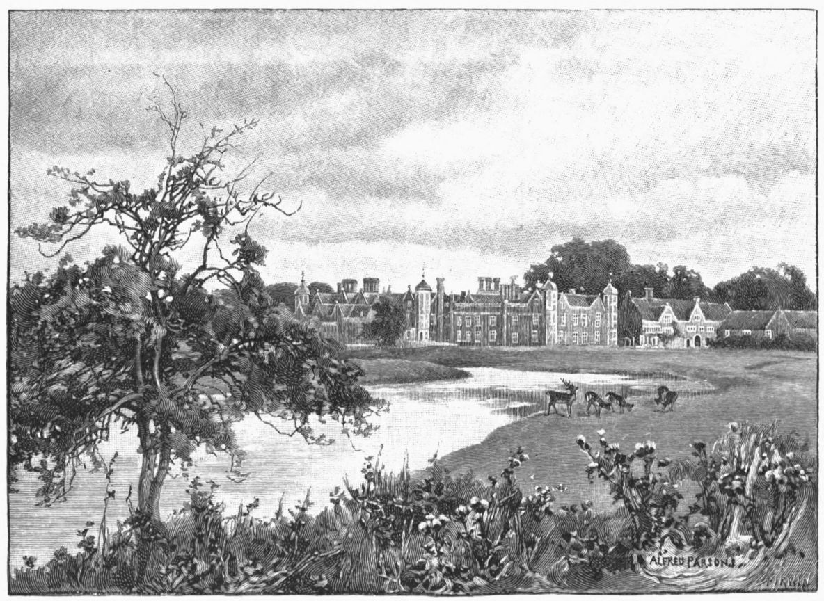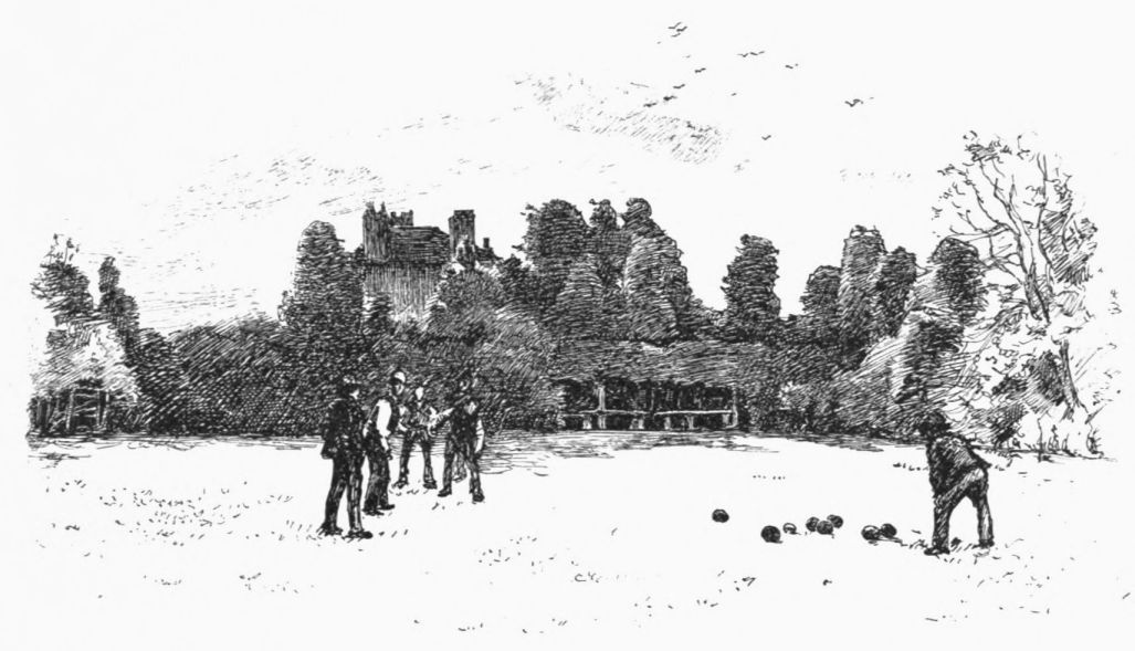 The tale is briefly this: In 1780 Sir Theodosius Boughton, a vicious and sickly boy, was squiring it at Lawford Hall, and fast drinking out his puny constitution. “To him enter” an evil spirit in the shape of a brother-in-law, an Irish adventurer, one Captain Donellan. This graduate in vice took the raw scholar in hand, and with the better will as being next heir to his estates. But it seems that drink and debauchery worked too slowly for the impatient captain, for one evening the wretched boy went to bed, called for his sleeping-draught, and drank the wrong liquid out of the right bottle. And as for Captain Donellan, he bungled matters somehow, and was hanged at Warwick in the following spring—an elegant, well-mannered man in black, who displayed much ceremonious punctilio at ascending the scaffold ahead of the sheriff. Ten years later{26} Lawford Hall was pulled down as an accursed thing, and the building before us is all that survives of it. To-day the Gloire de Dijon rose, the jasmine, and the ivy sprawl up its sad-colored walls and over the porch, which still wears the date 1604.