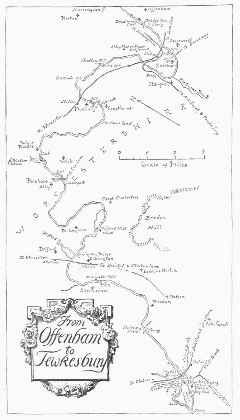 It was but shortly after that we came on an agreeable old gentleman, who stood a-fishing with a little red float, and lied in his teeth, smiling on us and asserting that Bubbenhall (where we had a mind to lunch) was but a mile below. A mile!—for a crow, perhaps, but not for proper old gentlemen, and most surely not for Avon. The freakish stream went round and round, all meanders{33}