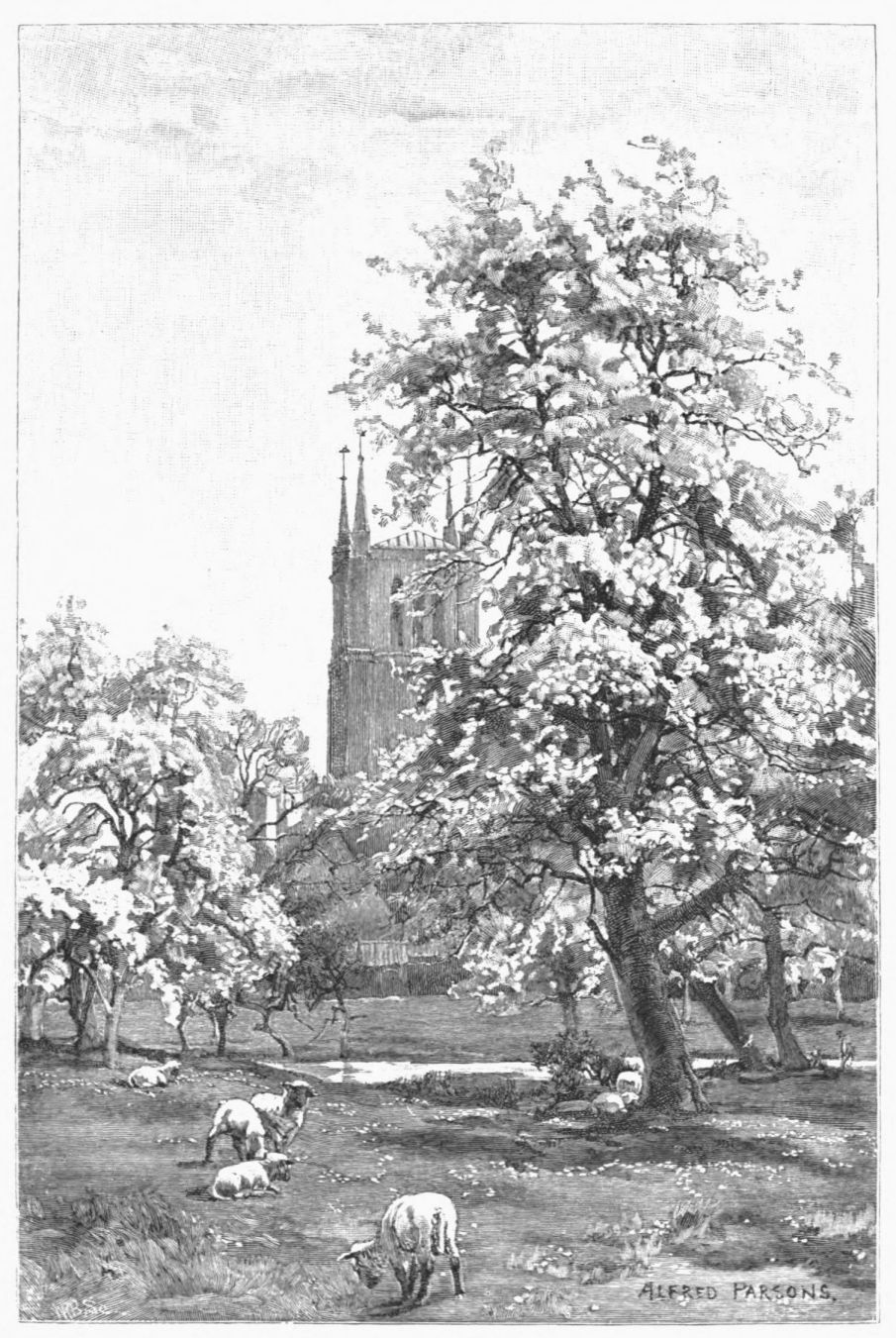 A wooden paling, once green, but subdued by years to all delicate tints, fronts the village street. Behind, in a garden of cypress and lilacs, lies the old vicarage, with deep bow-windows sunk level with the turf, a noteworthy house. For John Dyer, author of “Grongar Hill”—“Bard of the Fleece,” as Wordsworth hails him—held Catthorpe living for a few years in the last century; and here, while his friends