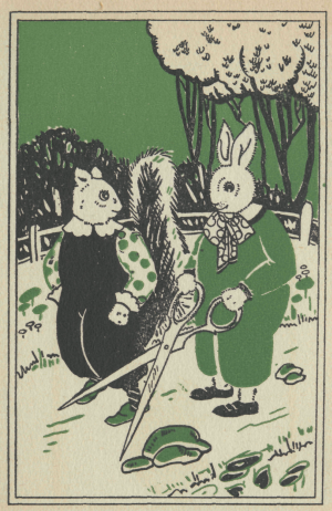 Frisky Squirrel held a paw to his mouth, so Henry Skunk would not talk too loudly.