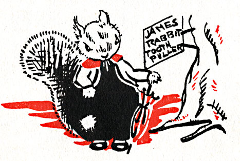 Jimmy Rabbit didn't know what to do. Mr. Mink had terribly sharp teeth. And he was very angry. But Jimmy was not angry at all. He didn't want to fight.