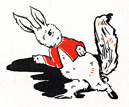 Well, Jimmy Rabbit was trying to decide what he would do that evening, when all at once somebody else decided it for him. For all at once a slim, red gentleman rushed at Jimmy, crying, "Give me my tail! I want my tail!"