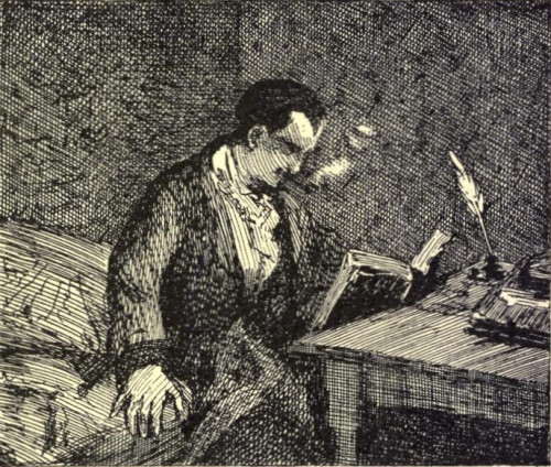With a certain instinct for drawing Baudelaire haunts many painter's studios: Delacroix's, whose genius he discovers, giving him much of his fame, becoming his intimate friend; Manet's, whose genius he also divines and discovers; Daumier's, to whom he attributes "the strange and astonishing qualities of a great genius, sick of genius." So also, from the beginning, Baudelaire's judgments are infallibly right; so also his first book, Le Salon de 1845, has all the insolence of youth and all the certitude of a youth of genius. But his fame is made, that is to say, as an imaginative critic, with Le Salon de 1846; for, after the prelude, the entire book is fascinating, paradoxical, and essentially æsthetical; a wonderful book in which he reveals the mysteries of colour, of form, of design, of technique, and of the enigmas of creative works. Here he elaborates certain of his mature theories, such as his exultant praise—in which he is one with Lamb and with Swinburne; his just disdain, and his grave irony, in which he is one with Swinburne; and, above all, that passionate love of all forms of beauty, at once spiritual and absolute, which is part of the quintessence of his genius.