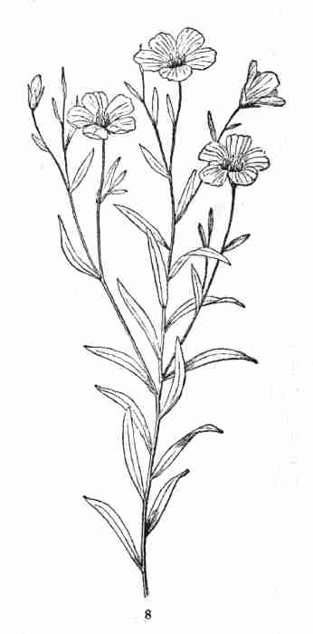 7. But Phanerogamous, or Flowering, Plants are all constructed on one plan, or type. That is, taking almost any ordinary herb, shrub, or tree for a pattern, it will exemplify the whole series: the parts of one plant answer to the parts of any other, with only certain differences in particulars. And the occupation and the delight of the scientific botanist is in tracing out this common plan, in detecting the likenesses under all the diversities, and in noting the meaning of these manifold diversities. So the attentive study of any one plant, from its growth out of the seed to the flowering and fruiting state and the production of seed like to that from which the plant grew, would not only give a correct general idea of the structure, growth, and characteristics of Flowering Plants in general, but also serve as a pattern or standard of comparison. Some plants will serve this purpose of a pattern much better than others. A proper pattern will be one that is perfect in the sense of having all the principal parts of a phanerogamous plant, and simple and regular in having these parts free from complications or disguises. The common Flax-plant may very well serve this purpose. Being an annual, it has the advantage of being easily raised and carried in a short time through its circle of existence, from seedling to fruit and seed.