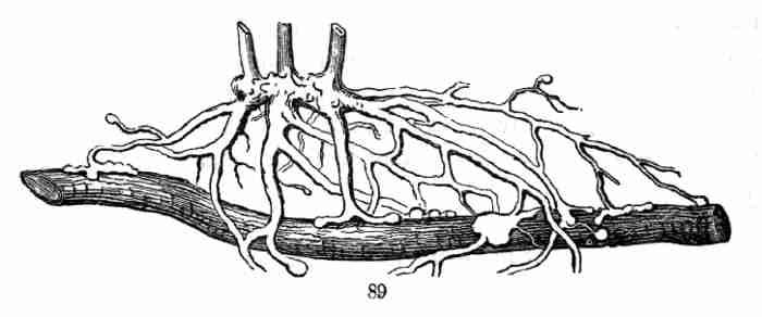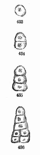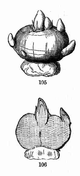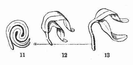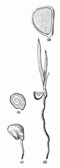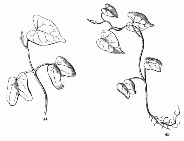 10. Before the nature of these parts in the seed was altogether understood, technical names were given to them, which are still in use. These initial leaves were named Cotyledons. The initial stem on which they stand was called the Radicle. That was because it gives rise to the first root; but, as it is really the beginning of the stem, and because it is the stem that produces the root and not the root that produces the stem, it is better to name it the Caulicle. Recently it has been named Hypocotyle; which signifies something below the cotyledons, without pronouncing what its nature is.