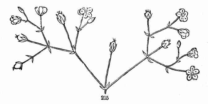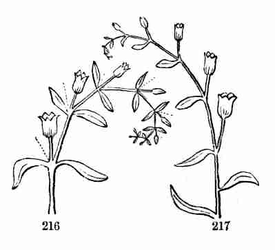 15. Blossoming. In Flax the flowers make their appearance at the end of the stem and branches. The growth, which otherwise might continue them farther or indefinitely, now takes the form of blossom, and is subservient to the production of seed.