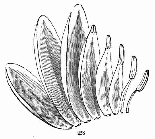 As this volume will be the grammar and dictionary to more than one or two Manuals, Floras, etc., the particular directions for procedure which were given in the "First Lessons" are now relegated to those works themselves, which in their new editions will provide the requisite explanations. On the other hand, in view of such extended use, the Glossary at the end of this book has been considerably enlarged. It will be found to include not merely the common terms of botanical description but also many which are unusual or obsolete; yet any of them may now and then be encountered. Moreover, no small number of the Latin and Greek words which form the whole or part of the commoner specific names are added to this Glossary, some in an Anglicized, others in their Latin form. This may be helpful to students with small Latin and less Greek, in catching the meaning of a botanical name or term.