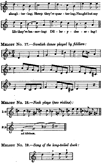 The song of the long-tailed duck is given by Strindberg in the first part of his "The Swedish People in War and Peace."