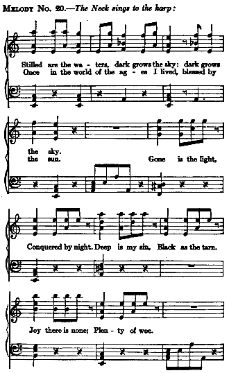 Melody No. 20 does not appear in the Swedish edition of the play. It is given by Emil Schering in an appendix to his German version of it—apparently from a manuscript placed at his disposal by Strindberg himself.