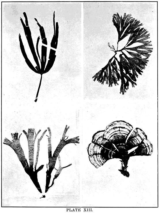 Grateful acknowledgment is here made to the following persons who have kindly assisted and advised the author and have also extended valued courtesies to her in the preparation of this book: Smith Ely Jelliffe, M.D., Ph.D.; Herbert M. Richards, A.B., Ph.D., Professor of Botany in Barnard College; Marshall A. Howe, A.B., Ph.D.; the Rev. George A. Holst; the Long Island Historical Society of Brooklyn for the use of its fine herbarium, containing the collections of Mr. John Hooper, Mr. A. R. Young, and others, from which most of the illustrations of algæ in this book were photographed; Miss Toedtleberg, Librarian of the Long Island Historical Society; Miss Ingalls, in charge of the Museum of the Long Island Historical Society; Dr. Theodore Gill; James A. Benedict, Ph.D., Assistant Curator of Marine Invertebrates in the Smithsonian Institution; Miss Mary J. Rathbun, second Assistant Curator of Marine Invertebrates in the Smithsonian Institution; Miss Harriet Richardson; and especially to Mr. John B. Henderson, Jr.