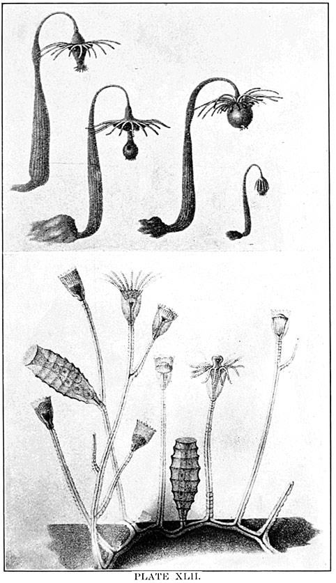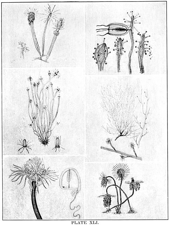 It has been said that everything on the land has its counterpart in the sea. But all land animals are separate and independent individuals, while many of those of the sea are united into organic associations comprising millions of individuals inseparably connected and many of them interdependent, such as corals, hydroids, etc. These curious communities can be compared only to the vegetation of the land, which many of them resemble in outer form. Other stationary animals, such as oysters and barnacles, which also depend upon floating organisms for their food, have no parallel on the land.