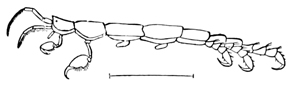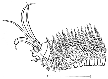 Various kinds of seaweed abound in the more sheltered parts of the rocks, and among them will be found amphipods and isopods, many of which are of species different from those of the sandy beaches. Here, too, is the little Caprella, imitating the seaweed in form, and swaying its lengthened body, which is attached to the plant only by its hind legs. On the seaweeds, as well as in the tide-pool, may be found beautiful hydroids, and on [pg009] them the curious little sea-spiders (Pycnogonidæ), animals which seem to be all legs.