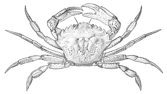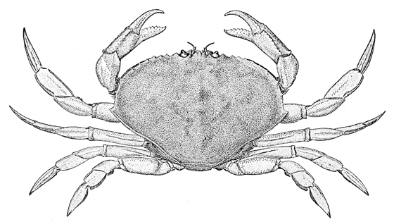 Hippa talpoida is a remarkable crab, somewhat resembling an egg. It is not likely to be seen unless searched for by digging at the water's edge. It burrows so rapidly that one must be quick to catch it after it is exposed by the shovel. In some places the tests of "sand-dollars" are common. The living animal may be found buried just below the surface at extreme low-water mark.